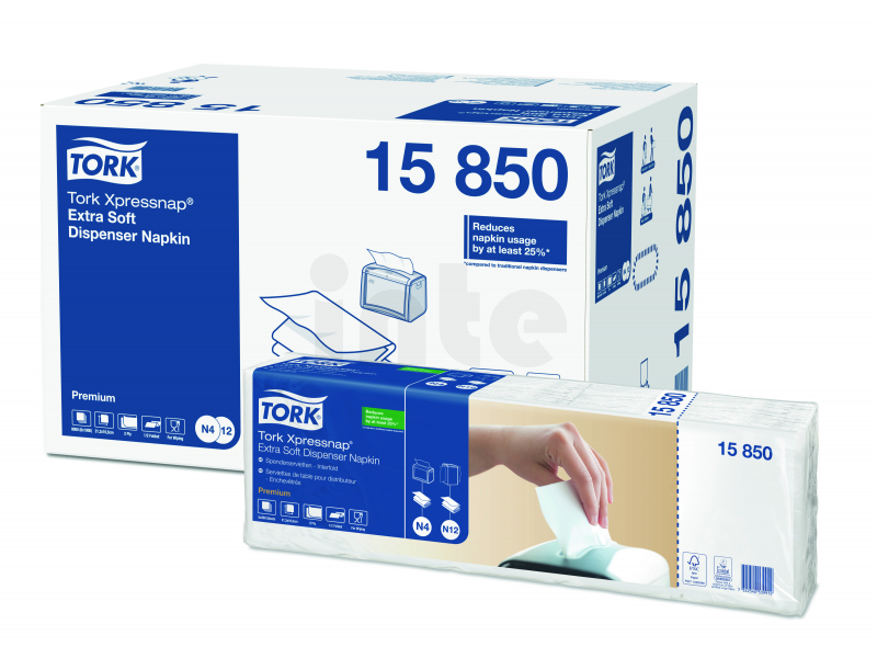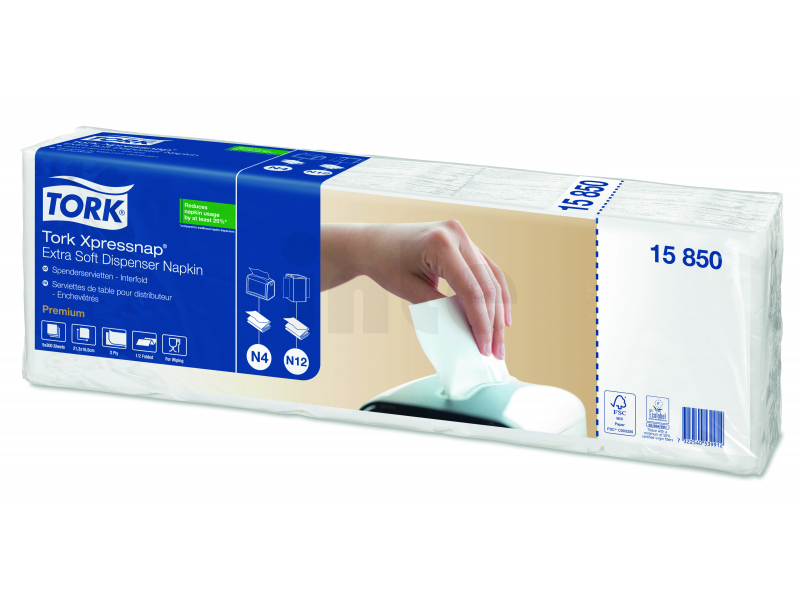 Systém vám pomůže snížit spotřebu ubrousků o 25 % v porovnání s tradičními zásobníky na ubrousky. Dvouvrstvé bílé ubrousky do zásobníku TORK Xpressnap® Extra Soft jsou ideální pro podniky, které dbají na komfort, provozní náklady a kvalitu.