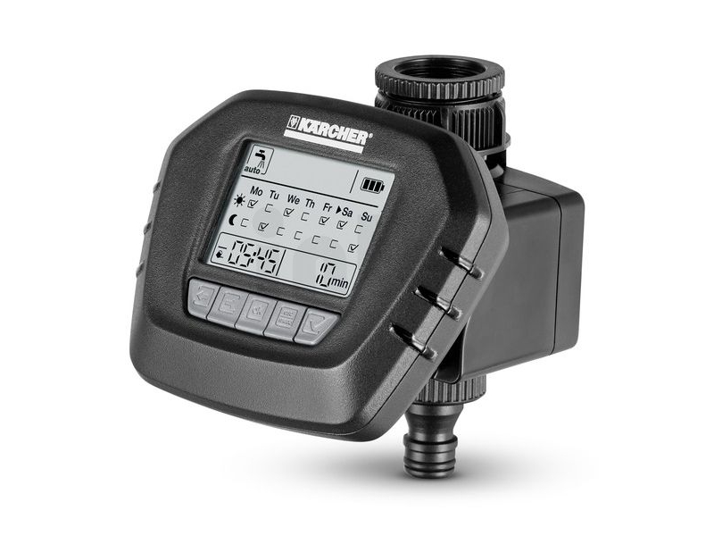 Kärcher zavlažovací hodiny WT 5 s možností manuálního zavlažování. Odnímatelný displej k pohodlnému programování. Přípojka na vodovodní kohoutek včetně předsazeného filtru. Baterie 9 V není součástí dodávkyVíce informací