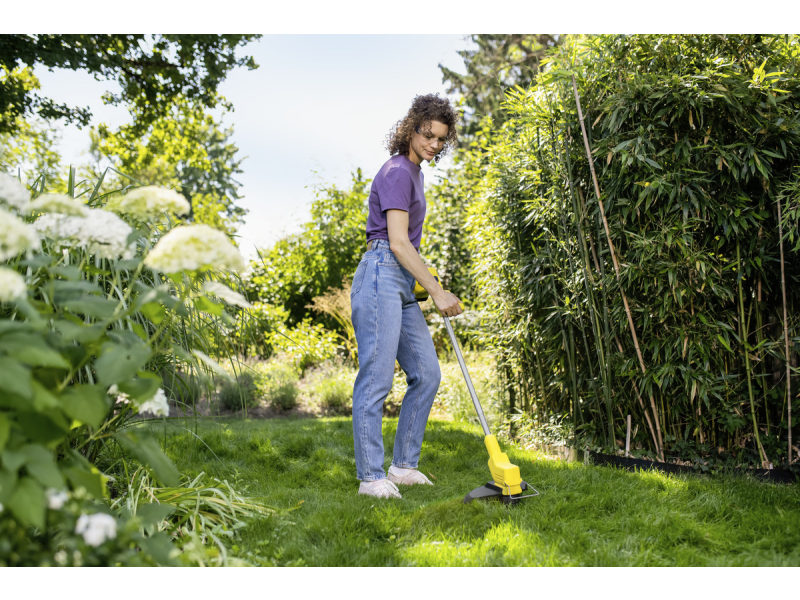 Akumulátorový vyžínač KÄRCHER LTR 2-18 Battery Set je lehký 18V strunový vyžínač s baterií a nabíječkou v balení, ideální pro precizní sekání okrajů trávníku a údržbu hůře dostupných míst bez kabelů.