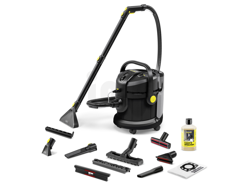 - Všestranně použitelný buď pro nástřikové odsávání textilních povrchů, nebo pro mokré a suché vysávání koberců a tvrdých podlah s vhodným příslušenstvím.
