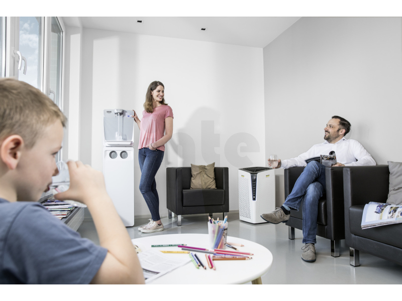 Maximální hygienu zajišťuje patentovaný systém automatické tepelné dezinfekce spolu s automatickým proplachováním, což výrazně snižuje nároky na servis i údržbu. O kvalitu vody se stará pokročilá filtrace Kärcher s možností použití filtru Hy-Protect pro odstranění virů a bakterií při zachování minerálů nebo filtru Active-Pure eliminujícího chlór a těžké kovy.