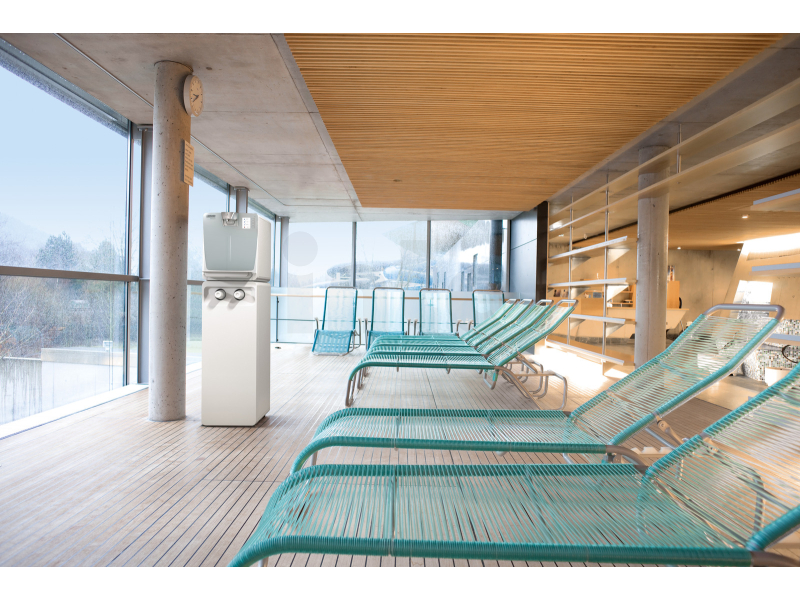 Komfort obsluhy zvyšuje multifunkční barevný dotykový displej, který umožňuje nastavení teploty, výdejního množství i kontrolu filtru. Praktická je také výdejní výška až 30 cm pro plnění velkých lahví a nastavitelné dávkování 0,2 / 0,5 / 1 l podle typu nádoby. Integrované úsporné režimy Eco a pohotovostní režim pomáhají minimalizovat spotřebu energie.