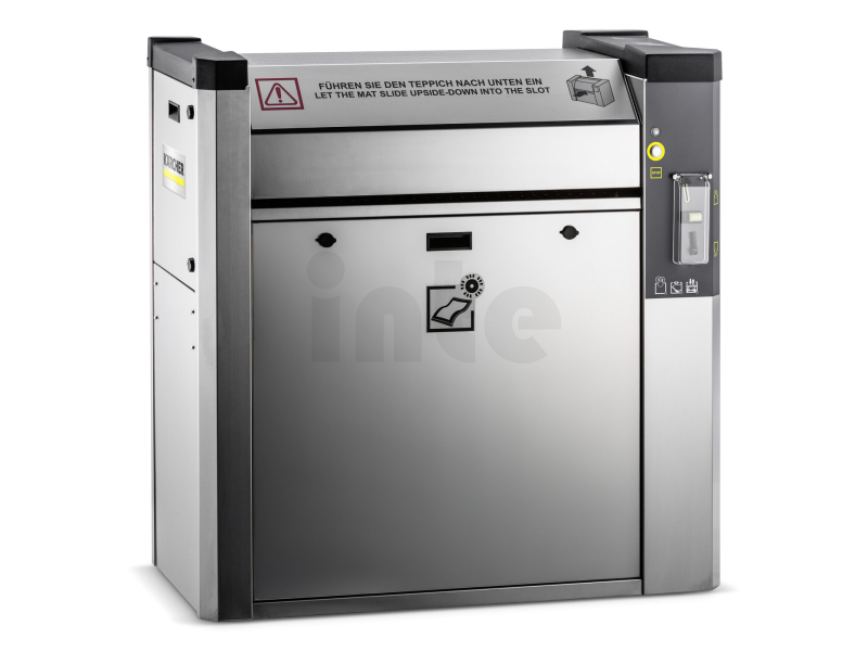 Zařízení disponuje extra širokým vstupním otvorem pro rohože až do šířky 80 cm, což umožňuje rychlé a pohodlné čištění většiny běžných autokoberců. Přední zavádění rohoží minimalizuje usazování nečistot na stroji a pomáhá udržet čistý a reprezentativní vzhled zařízení, zatímco sběrná nálevka okamžitě odvádí uvolněné nečistoty do odpadního koše.