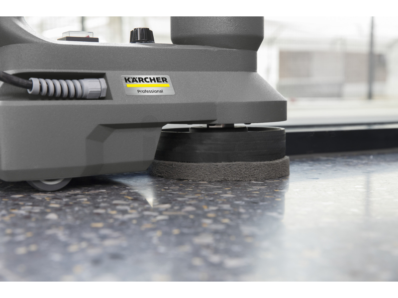 Díky kompaktním rozměrům (33 cm x 17-20 cm x 29 cm) lze síťový mycí stroj KÄRCHER BD 17/5 C použít také v oblastech, kde klasické čisticí stroje nelze kvůli velikosti použít, a ruční čištění je stále drahé. Správci služeb, komerční nebo komunální uživatelé, kteří pracují v těchto oblastech, najdou v tomto stroji vhodné řešení. Snadno přístupné ovládací prvky na boku zaručují rychlou a pohodlnou manipulaci. S regulátorem otáček (0 - 450 ot / min) a odpovídajícím příslušenstvím může být stroj optimálně přizpůsoben každému čištění: například hluboké čištění, krystalizace nebo leštění tvrdých oblastí nebo šamponování koberců. Speciálně pro čištění schodiště je současné čištění vodorovných a svislých ploch příjemnou úlevou, která šetří čas, energii a náklady. Tělo stroje je vyrobeno z odolného plastu odolného proti nárazu. Kartáč disku nebo deska pohonu destičky lze snadno vyměnit během několika sekund. Díky dvěma držadlům lze bezpečně řídit a obsluhovat stroj o hmotnosti 5 kg.