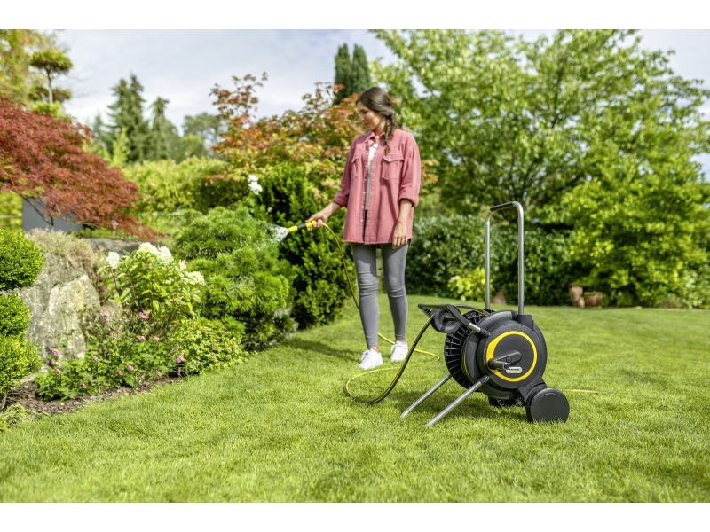 KÄRCHER HT 4 představuje odolný hadicový vozík Kärcher, který zajišťuje bezpečné uložení hadice, snadnou manipulaci a maximální stabilitu při práci na zahradě. Díky mimořádně široké základně a nízkému těžišti je vozík pevný i při plném zatížení, což přináší komfortní a bezpečné zavlažování.