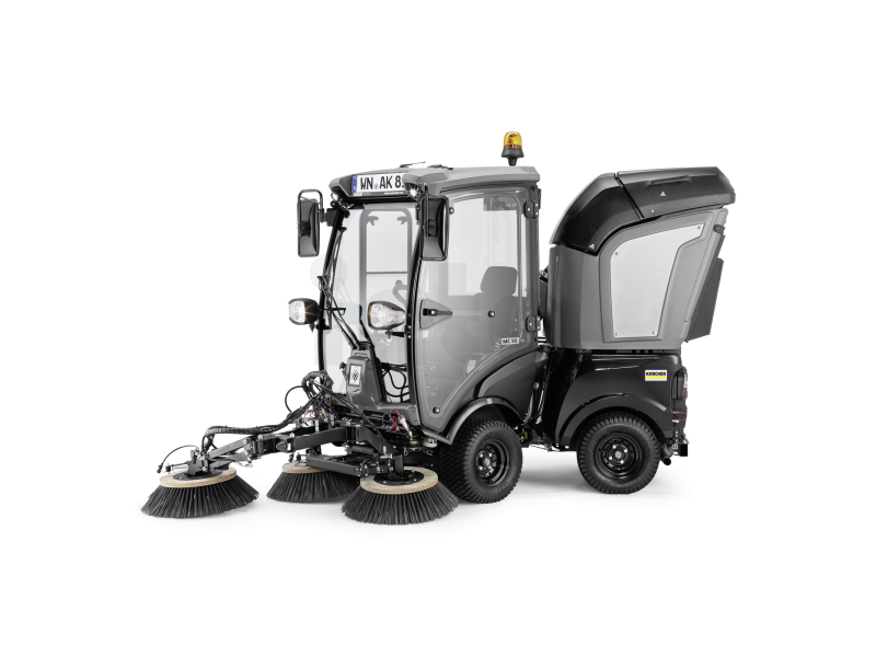 Pro perfektní výsledky i na nerovném terénu: zametací zařízení na vakuovém zametači Kärcher MC 50 Adv je zavěšeno v kyvné poloze, která díky odlehčení zátěže a hydraulické plovoucí poloze zaručuje konstantní kontaktní tlak a v důsledku toho důsledně optimální výsledky zametání. MC 50 Adv snadno zvládne i hrubé nečistoty, jako jsou lahve, objemné listy a obaly, a jednoduše se odhodí do robustního odpadního kontejneru na odpady o objemu 500 litrů, který nezůstane pozadu. Přímý sací kanál minimalizuje riziko zablokování. Avšak v nepravděpodobném případě, že dojde k ucpání, lze sací trubici mezi sacím hrdlem a snadno vyjímatelnou nádobou na odpad extrahovat pomocí dvou držadel, bez potřeby nástrojů. Nářadí, včetně sekačky, sněhové radlice a rozmetadla, lze také vyměnit bez použití nástrojů - díky našemu inteligentnímu systému rychlé výměny to lze dokončit během několika minut.