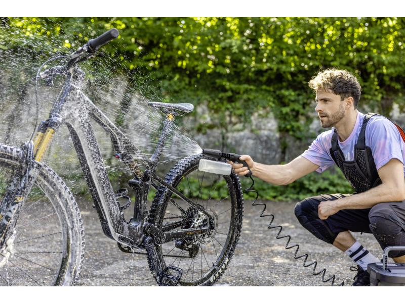 Pěnovací tryska spolu s přírodním čističem Natural Bike Cleaner účinně rozpouští typické nečistoty z jízdy a zároveň chrání jednotlivé komponenty.