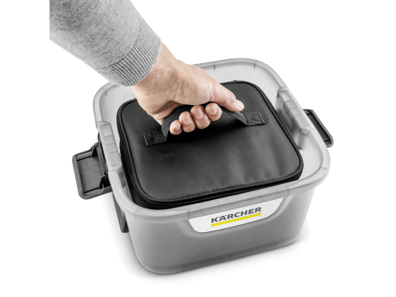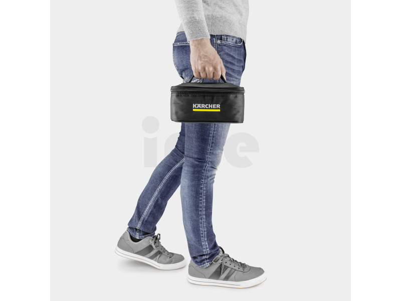 Veškeré příslušenství lze přehledně uložit do vodoodpudivé textilní tašky, která nabízí další prostor pro cyklistické doplňky a je ideální pro přepravu i použití v terénu. Tašku lze navíc uložit do prázdné nádržky zařízení Kärcher OC 4, což šetří místo při transportu.