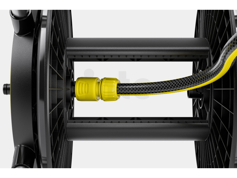 Naviják vyniká kompaktním designem, nízkým těžištěm a vysokou stabilitou, což zajišťuje bezpečnou manipulaci i při častém používání. Volně se pohybující klika umožňuje snadné, rychlé a rovnoměrné navíjení hadice bez zamotání, zatímco zalomená přípojka hadice podporuje maximální průtok vody a chrání hadici před kroucením či poškozením.