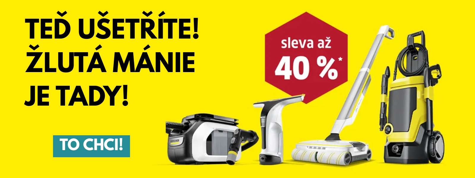 Využijte jedinečnou příležitost pořídit si kvalitní čisticí techniku Kärcher za výhodné ceny a zvládněte jarní úklid ve velkém stylu. Během akce Žlutá mánie můžete získat vybrané produkty Kärcher se slevou až 40 %.