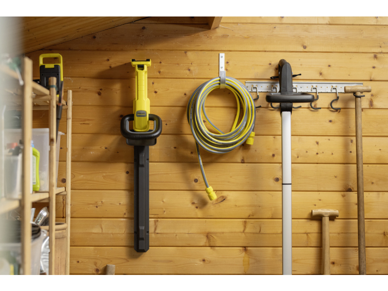 - Jednoduché upevnění pro bezpečné přenášení nůžek na živý plot kamkoli je zapotřebí a pro jejich bezpečné uskladnění po použití.