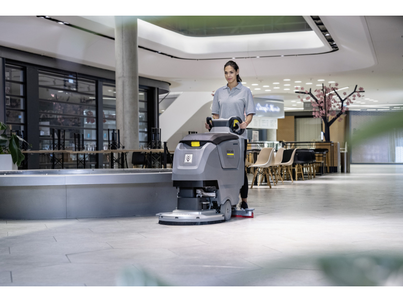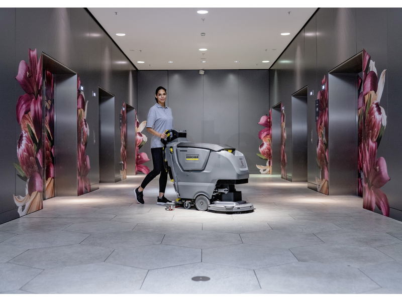 Výkonná lithium-iontová baterie 80 Ah umožňuje dlouhou pracovní dobu až 2,5 hodiny, rychlé nabíjení bez poškození článků a až několikanásobně delší životnost oproti olověným bateriím. Praktický plošný výkon až 1 840 m²/h spolu s nízkou hlučností 65 dB(A) dovoluje využití i během běžného provozu budovy, například v nemocnicích, administrativních centrech nebo obchodních prostorech.