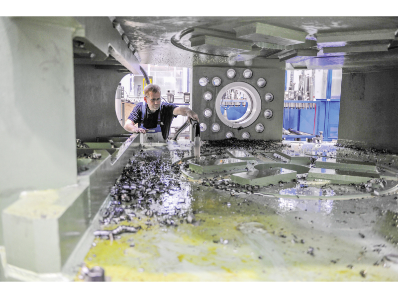 • Vypouštěcí hadice na sběrné nádobě nečistot pro bezpečné vyprazdňování olejů a chladicích prostředků.