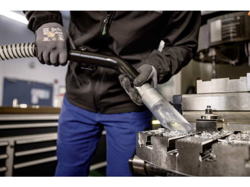 Vysavač je vybaven dvěma velmi tichými ventilátory, které zajišťují silné sání při minimální provozní hlučnosti. Je ideální pro vysávání menšího množství kapalin i pevných látek, jako jsou oleje, chladicí emulze, hrubé a abrazivní třísky.
