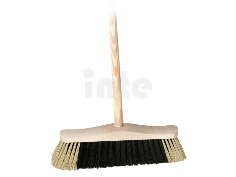 Smeták a hůl bez závitu, dřevěné nelakované tělo je osazeno neštěpeným syntetickým vláknem.