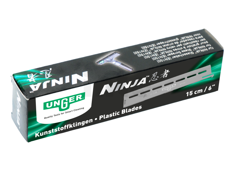 Unger NINJA plastová čepel 15 cm N150P je prémiové příslušenství pro škrabky NINJA, určené pro bezpečné odstranění odolných nečistot z citlivých povrchů, jako jsou lakované nebo plastové materiály.