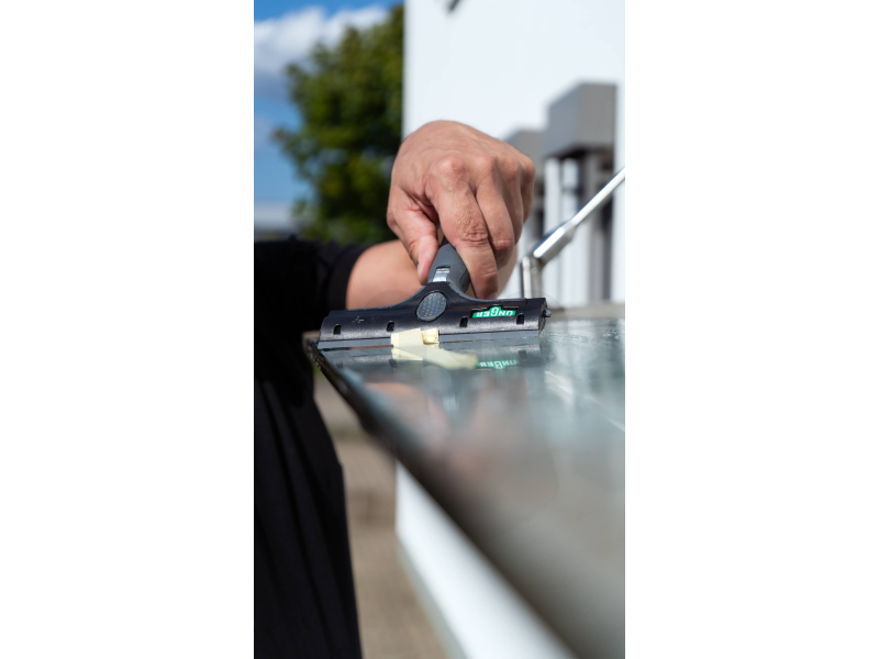 Velká šířka 15 cm umožňuje rychlejší práci na větších plochách, což ocení zejména profesionální čističi oken, úklidové firmy nebo správci budov. Plastová čepel minimalizuje riziko poškrábání lakovaných nebo upravených povrchů, které by mohlo vzniknout při použití kovových čepelí.