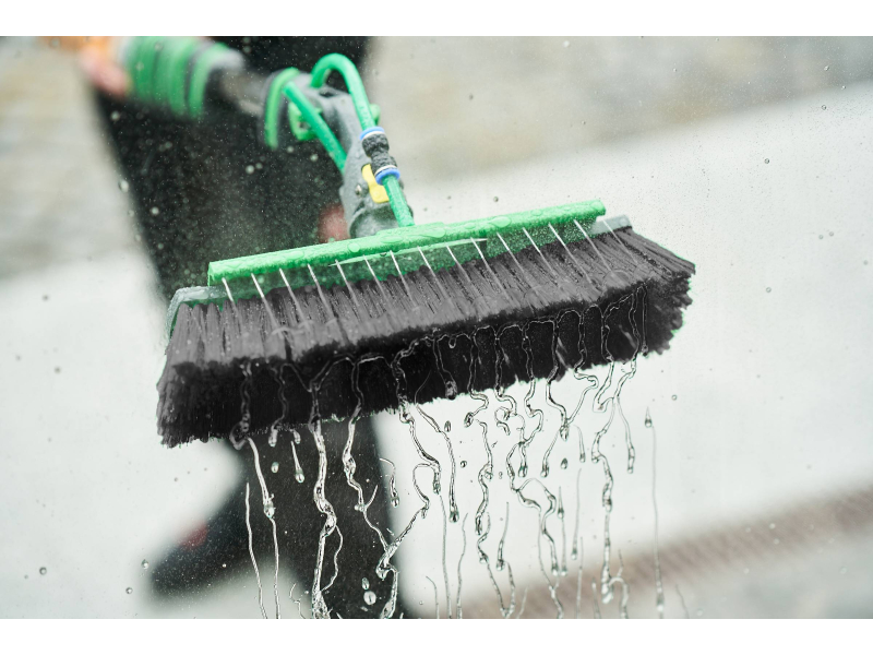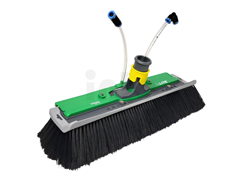 Důležitou součástí kartáče je integrovaná oplachovací lišta (Rinse Bar), která zajišťuje rovnoměrný přívod čisté vody přímo na čištěný povrch. To umožňuje okamžité oplachování uvolněných nečistot, minimalizuje vznik šmouh a zajišťuje dokonalý výsledek bez nutnosti dodatečného oplachu.