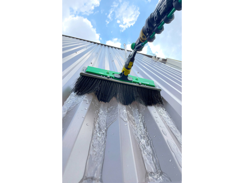 UNGER nLITE Cladding Brush NFB41 je speciálně vyvinutý kartáč na čištění fasádních povrchů s hlubokými profily, jako jsou trapézové plechy, vlnité kovové fasády, PVC panely nebo HPL desky. Ve spojení s teleskopickým systémem nLITE® a přívodem čisté vody představuje ideální řešení pro profesionální úklidové firmy i náročné uživatele.
