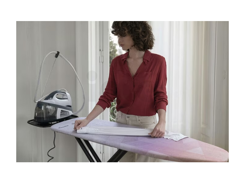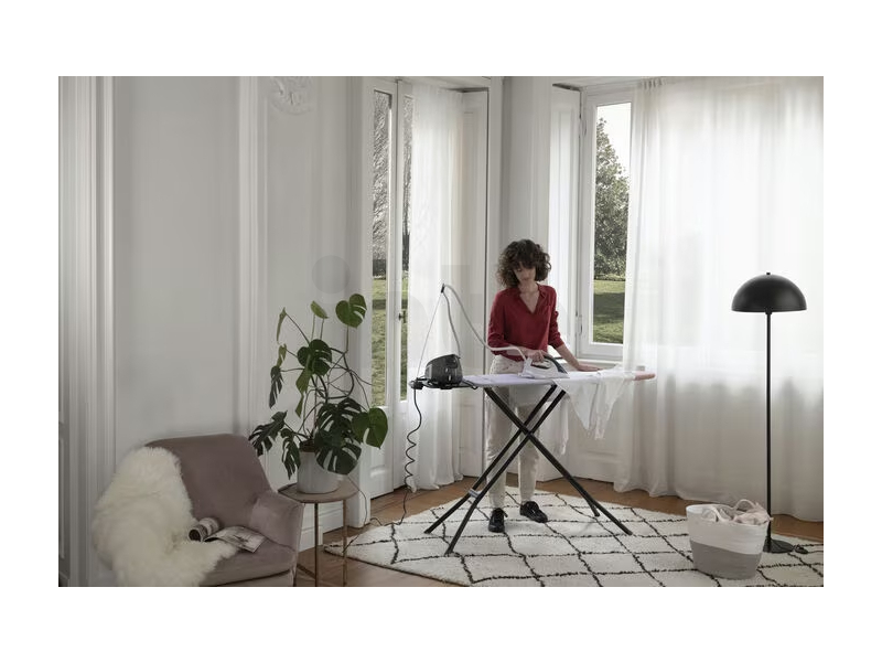 Velká kovová plocha (se zásuvkou a držákem kabelu) je vhodná pro žehličky s parním generátorem i parní stanice.Je stabilní a bezpečně stojící, s extra silnými kulatými nohama o průměru 28 mm. Bez ohledu na to, jaký typ žehličky používáte, žehlicí prkno Vileda Diamond M vám padne jako ulitá.