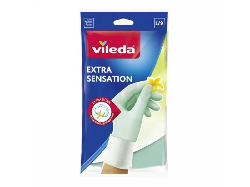 Rukavice Vileda Extra Sensation jsou navrženy tak, aby poskytovaly dokonalý cit v prstech i při nošení rukavic. Extra tenký latexový materiál umožňuje precizní manipulaci s nádobím, sklem nebo drobnými předměty, což oceníte zejména při jemných domácích pracích.