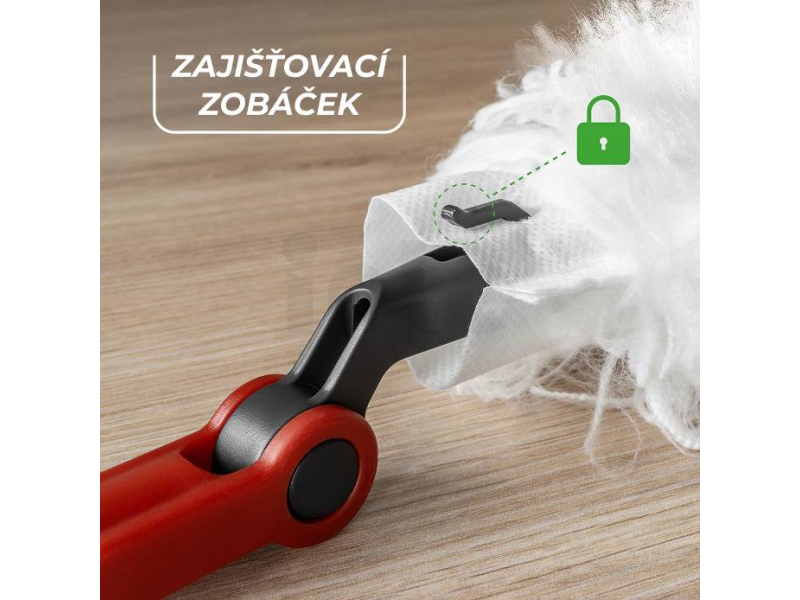 • Spolehlivý úklid díky háčku - Užijte si bezstarostný úklid díky integrovanému háčku Flex & Catch, který zajišťuje, že hlavice drží na místě a nespadne během utírání prachu. Zažijte bezpečný a nepřerušovaný proces úklidu.