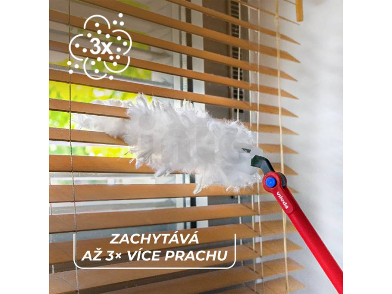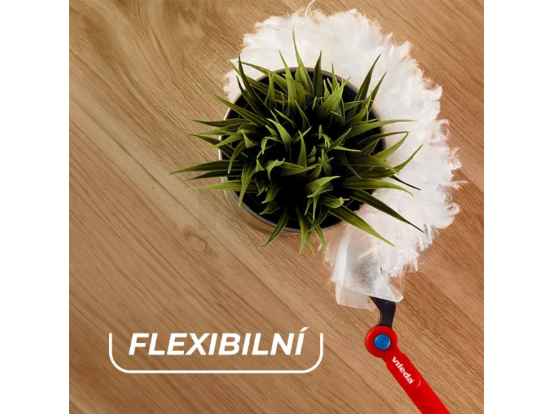 Vileda Flex & Catch prachovka s teleskopickou rukojetí je navržena pro maximální pohodlí, účinnost a šetrnost k životnímu prostředí. Ohebná hlavice s 360º recyklovanými vlákny zachytí až 3× více prachu než klasické péřové prachovky a díky své otočné konstrukci snadno dosáhne i do těžko dostupných míst, jako jsou horní police, žaluzie nebo ventilační otvory. Teleskopická rukojeť se prodlouží až na 93 cm, což umožňuje univerzální úklid od podlahy po strop bez nutnosti použití žebříku. Díky integrovanému háčku a spolehlivému upevnění hlavice je úklid plynulý, bezpečný a bez přerušení. S Viledou Flex & Catch zvládnete rychlý, důkladný a ekologický úklid celé domácnosti – snadno, pohodlně a s dokonalým výsledkem.