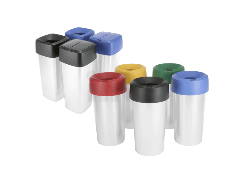 Pro snadné a hygienické používání nabízí kulaté víko různé možnosti, včetně trychtýřového víka pro používání bez dotyku (k dispozici v různých barvách) nebo posuvného víka v černé barvě.