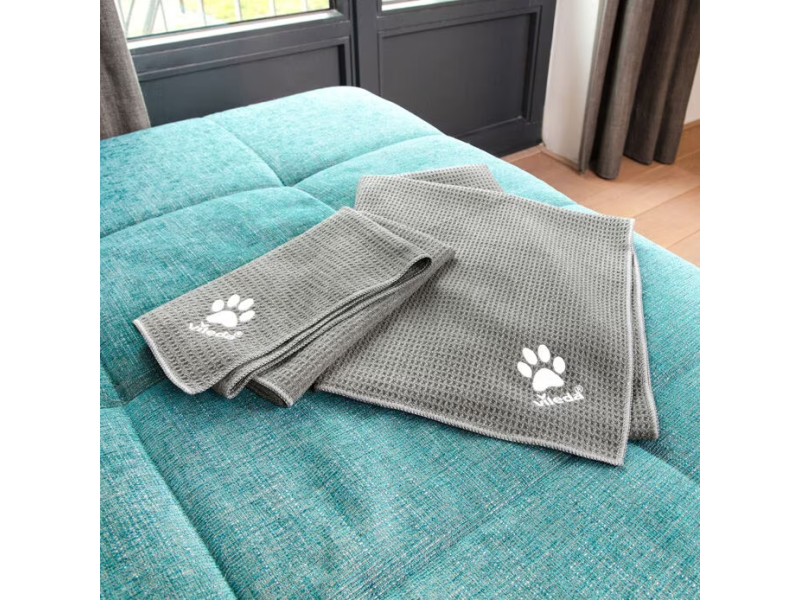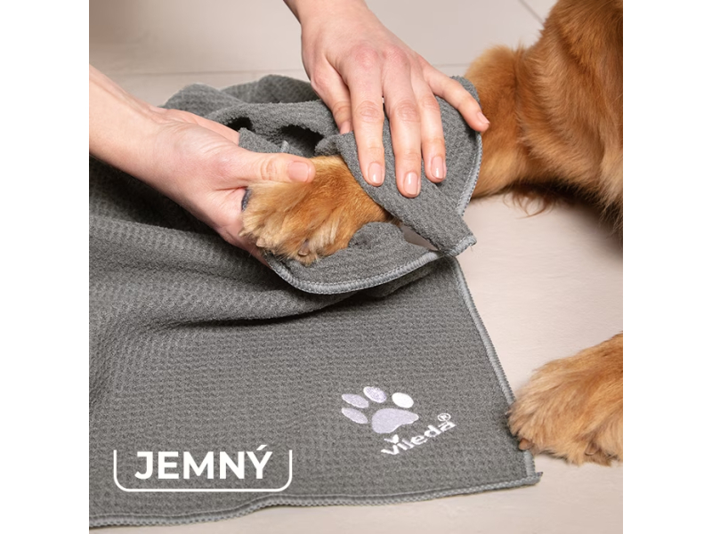 Měkký ručník z mikrovlákna, vysoká vstřebatelnost, rychle schne. Speciální vaflová struktura jemně odstraňuje nečistoty z tlapek a srsti.