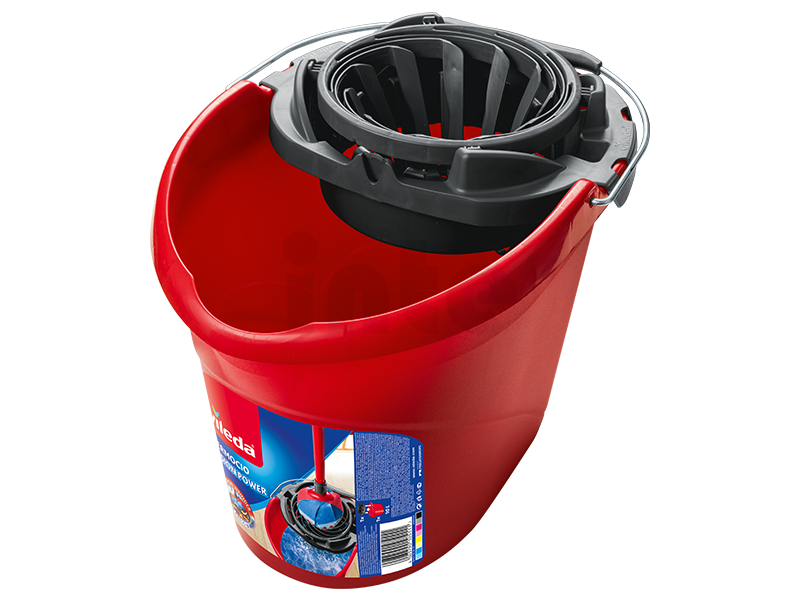 Moderní kbelík k třásňovým mopům. Spirálový ždímač. Ždímací prsty působí nyní ze všech stran a zajišťují vynikající ždímací účinek. Ergonomická rukojeť.