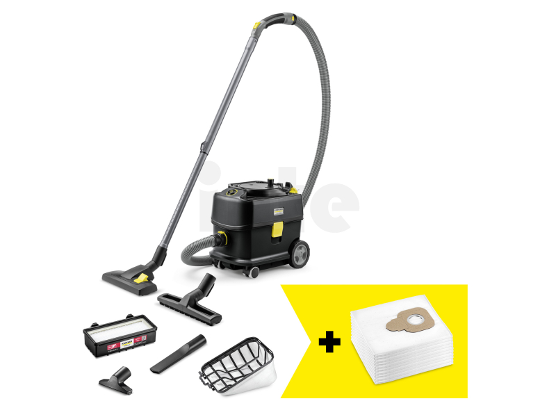 KÄRCHER T 10/1 Adv HEPA Go!Further je profesionální vysavač na suché vysávání z limitované ekologické edice Go!Further, vyrobený z 45 % recyklovaného plastu a dodávaný s bohatým příslušenstvím včetně 10 vliesových filtračních sáčků. Díky vysoce účinnému filtru HEPA 14 s filtrační účinností 99,995 % splňuje nejvyšší hygienické standardy a je ideální pro použití v nemocnicích, školách, hotelech, kancelářích i dalších citlivých provozech.