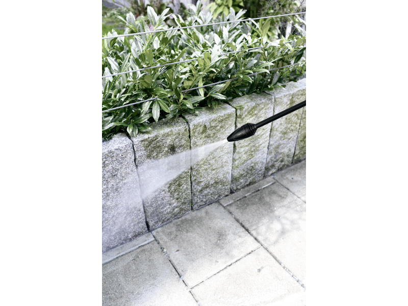 - Flexibilní hadice zajišťuje maximální flexibilitu a tím i maximální volnost pohybu. Vysokotlakou hadici snadno naviňte a odvíjejte, aniž by se vytvořily uzly.