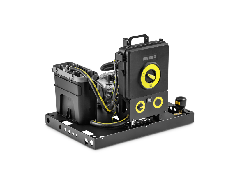 Bezpečnost a komfort obsluhy zvyšuje integrovaná nádrž na vodu s ochranou proti chodu nasucho, elektronické monitorování provozu s LED indikací chyb a servisních intervalů, velký jemný vodní filtr a systém dávkování čisticího prostředku s indikátorem prázdné nádrže. Jednoduché ovládání jedním otočným přepínačem, rychlá instalace a snadný servisní přístup ke komponentům výrazně zvyšují produktivitu i uživatelský komfort.