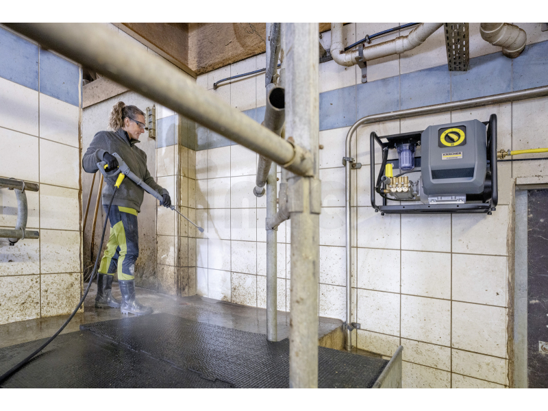 Praktický provoz zajišťuje velký integrovaný vodní filtr pro ochranu čerpadla, snadný servisní přístup ke komponentům a rychlospojky EASY!Lock umožňující rychlou výměnu příslušenství bez zbytečných prostojů. Kompaktní stacionární konstrukce s možností přehledného uložení příslušenství zároveň přispívá k bezpečnému a ergonomickému používání.
