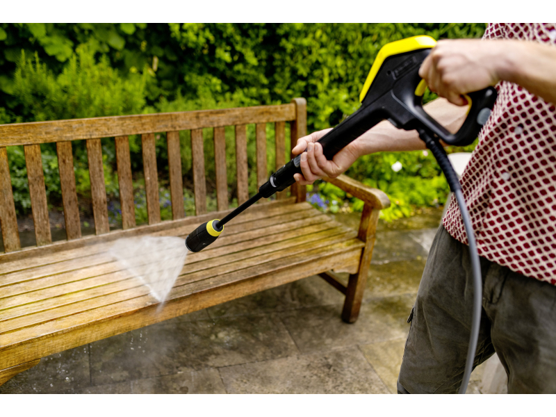 Díky Bluetooth připojení lze tlak a nastavení pohodlně ovládat přes aplikaci Kärcher Home & Garden, která nabízí integrovaného poradce pro použití, praktické návody a tipy. Promyšlené detaily jako teleskopické madlo, kolečka s měkkým povrchem, integrované držáky příslušenství a nízké těžiště zajišťují snadnou manipulaci, stabilitu a komfortní přepravu.