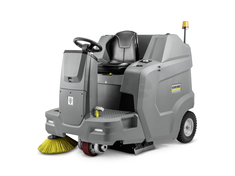 KÄRCHER KM 100/120 R Bp Pack 160Ah Li+FC je robustní profesionální zametací stroj s odsáváním a posedem, navržený především pro prašné vnitřní prostory s požadavkem na nulové emise, tichý provoz a vysokou produktivitu. Výkonná lithium-iontová baterie 160 Ah zajišťuje dlouhou dobu provozu až několik hodin, rychlé nabití pomocí rychlonabíječky a zcela bezúdržbový provoz bez doplňování vody.