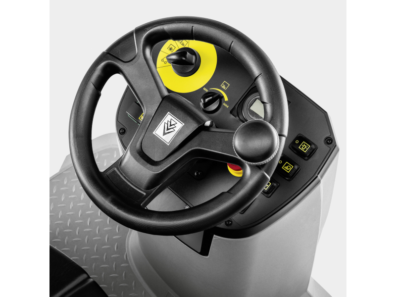 Maximální komfort obsluhy přináší nastavitelné sedadlo řidiče, výborný výhled na pracovní prostor a ergonomicky rozmístěné ovládací prvky. Díky snadnému přístupu ke všem servisním komponentům bez použití nářadí je údržba rychlá a nenáročná. Stroj lze navíc doplnit o ochrannou střechu nebo držák vysavače.
