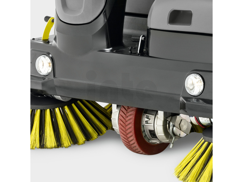 Komfort a bezpečnost obsluhy zvyšuje elektrohydraulické vrchní vyprazdňování, multifunkční displej s přehledem provozních dat, intuitivní ovládací panel Easy Operation a systém Kärcher Intelligent Key, který umožňuje nastavení uživatelských oprávnění a jazyků. Zametací válec umístěný mezi zadní kola zlepšuje překonávání překážek, usnadňuje servisní přístup a umožňuje rychlou výměnu do 5 minut.