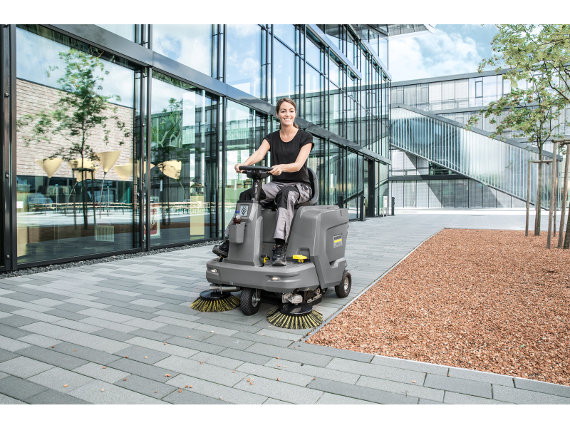 KÄRCHER KM 85/50 R Bp Pack je kompaktní profesionální zametací stroj s odsáváním a posedem, navržený pro efektivní úklid menších až středně velkých ploch v interiéru i exteriéru. Díky malým rozměrům, vysoké manévrovatelnosti a průjezdu dveřmi od 90 cm je ideální pro zastavěné, úzké nebo členité prostory, kde běžné zametací stroje nemohou pracovat.